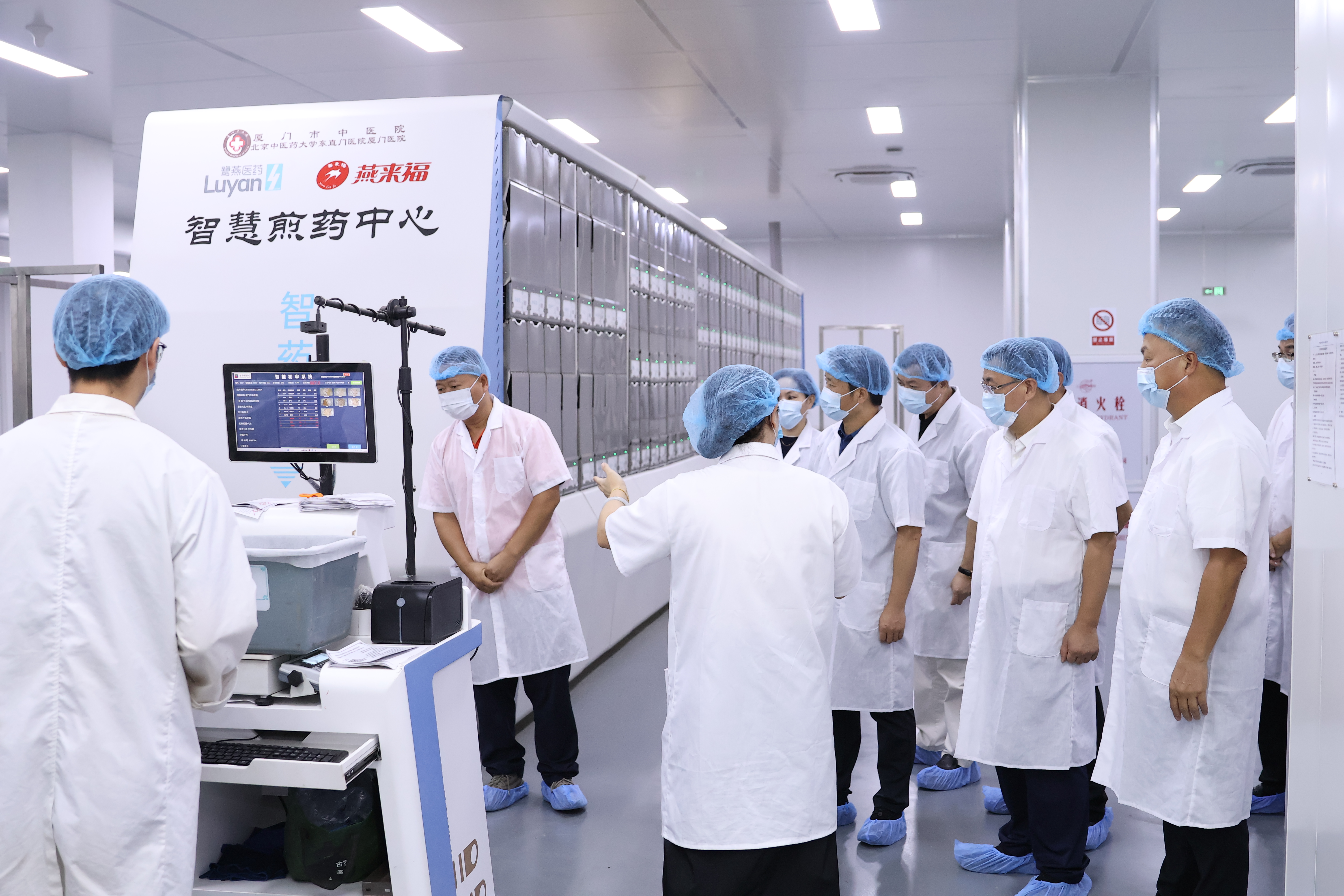 考察团实地走访了鹭燕医药现代化仓储物流中心和智慧煎药中心,深入调研药品仓储配送规范化运营体系,直观感受企业在医药流通、智慧煎药的创新发展成果。